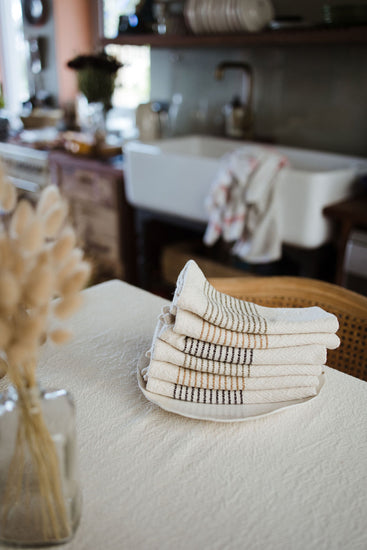 The Skaap napkins create a statement on their own or pair perfectly with the Skaap tablecloth. Made from 100% cotton and bamboo, these napkins are durable and wash easily. Comes in three colour variations - olive, mustard and charcoal.